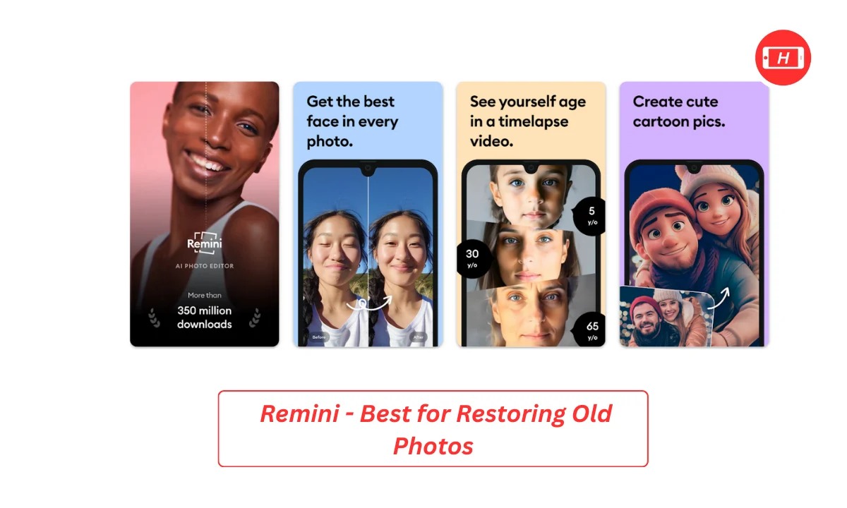 Remini is my go to app when I need to restore old family photos. I tested it with some really damaged images from my childhood and I was amazed at how it brought them back to life. The app specializes in HD upscaling and facial detail restoration.